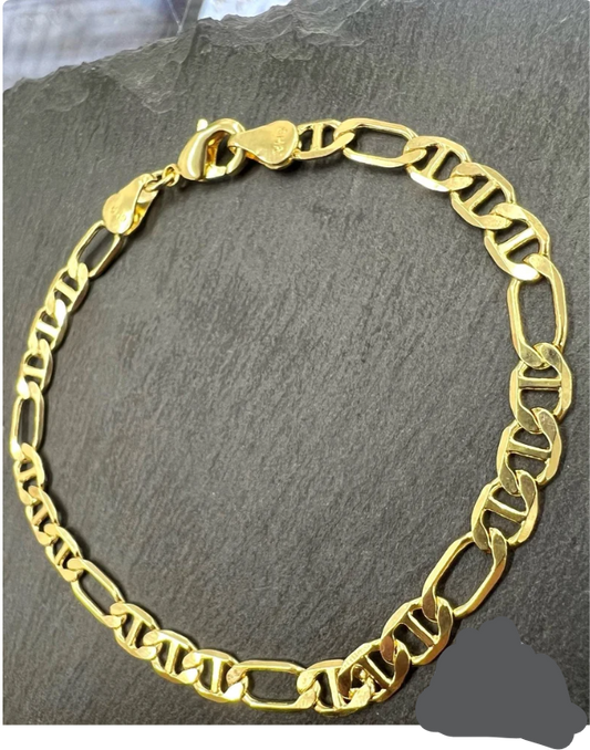 14K Gold Filled Mariner Figaro Link Bracelet for Mens 7.5" Stylish