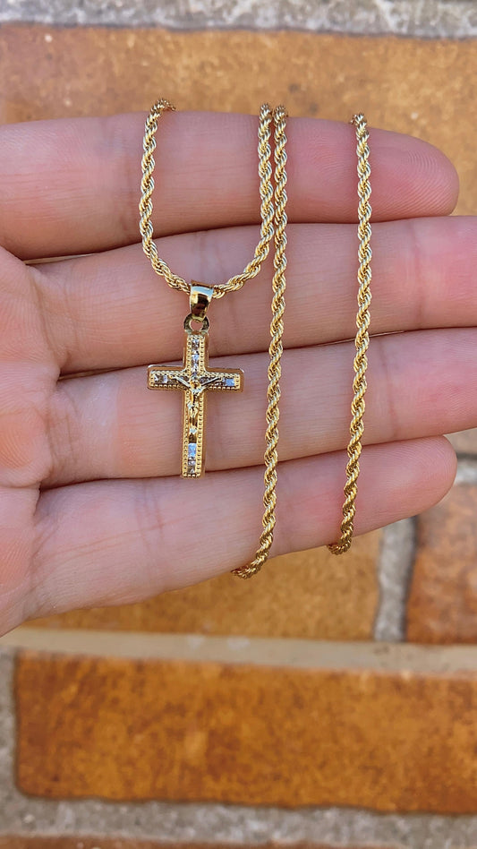 14K Gold Filled Cross Necklace CZ Mariner Chain Mens Womens Toddler Youth Kids Baby