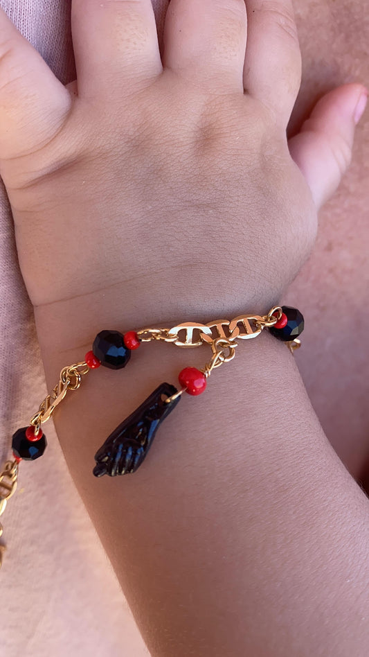 14K Gold Filled Baby Azabache Bracelet / Kids Bracelet 6" / Gold Azabache Bracelet /Kids Jewelry