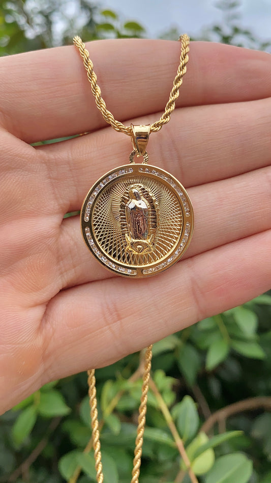 Virgencita de Guadalupe Pendant Necklace 20" 14K Gold Filled Womens Ladies Girls