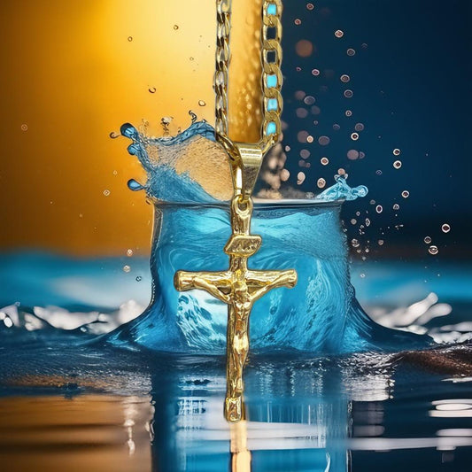 Yellow Gold Filled Rustic Cross Necklace Crucifix Charm Mens Womens Curb Chain 24"