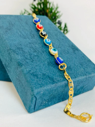 Newborn Baby/Childrens Boys/Girls Gold Filled Evil Eye Bracelet For Protection, 14k Real Gold Filled