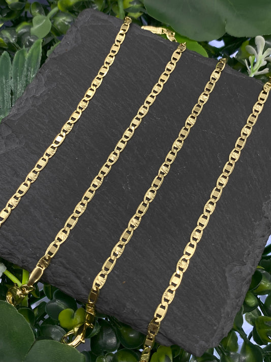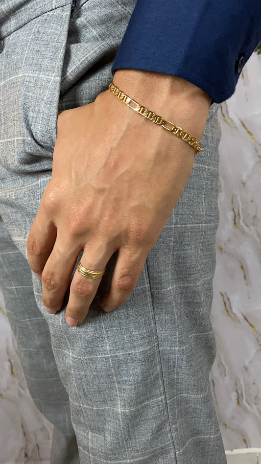 14K Gold Filled Mariner Figaro Link Bracelet for Mens 7.5" Stylish