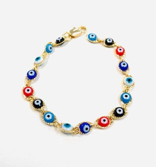 Newborn Baby/Childrens Boys/Girls Gold Filled Evil Eye Baby Bracelet Luck Valentino Link