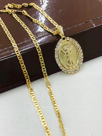 CZ Divino Nino Necklace Mariner link Chain for Womens Mens Kids Childrens/ Divine Child Necklace 21x16/ Baby Jesus Pendant