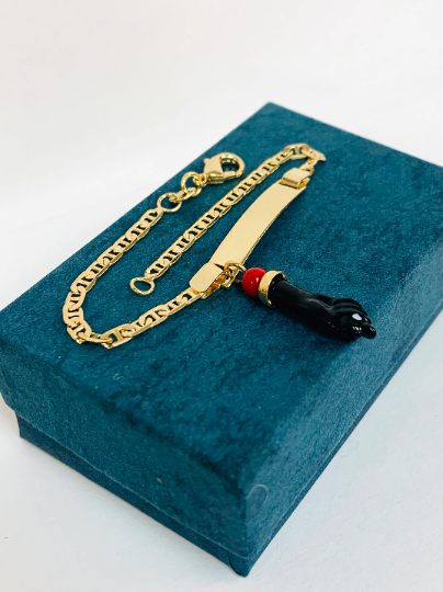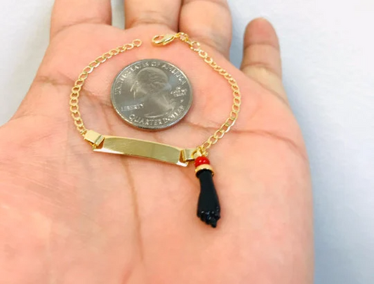 Baby ID Bracelet / Azabache Baby Bracelet 5.5" / Cuban Link Bracelet/ 14K Gold Filled Baby Bracelet