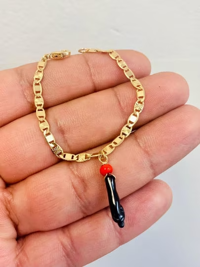 Newborn Baby Kids Childrens Azabache Bracelet Gold Filled Protection & Good Luck Jewelry