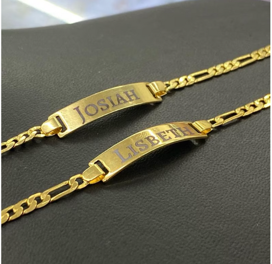Newborn Baby Figaro Link ID Bracelet 5.5" for Boys and Girls 14K Gold Filled Personalized Engrave Customer