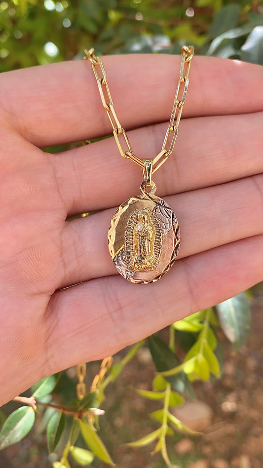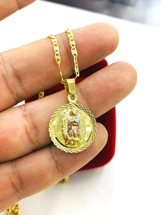 Necklace Guadalupe Valentino 20" Pendant Cadena de Guadalupe Oro Regalos Para Mujer