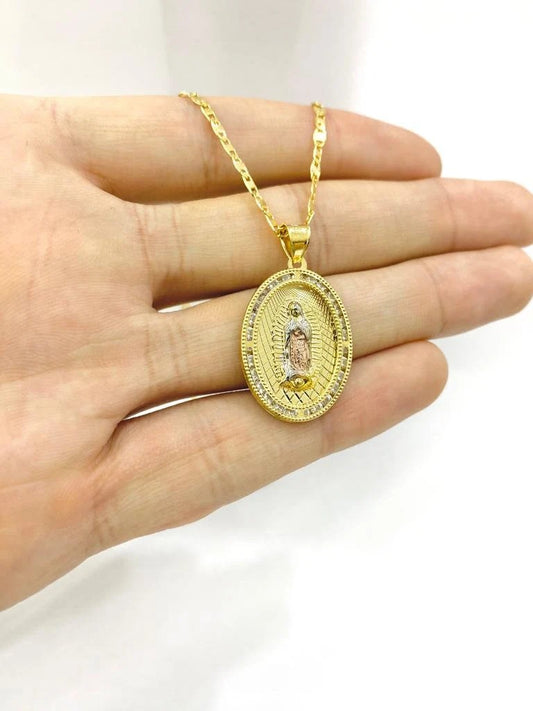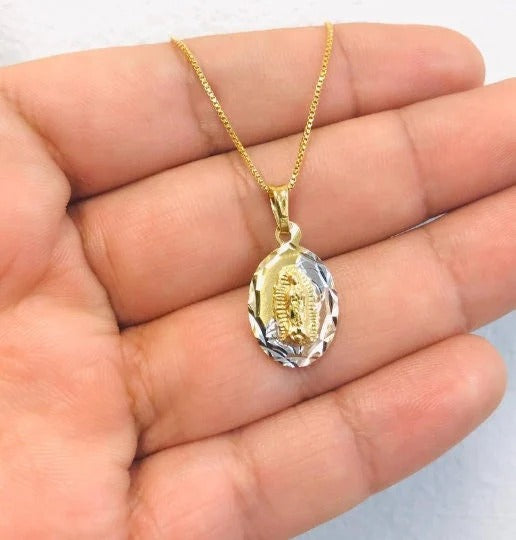 Necklace Pendant Virgen Guadalupe Link Box Chain 14K GF Gifts Religious for adults