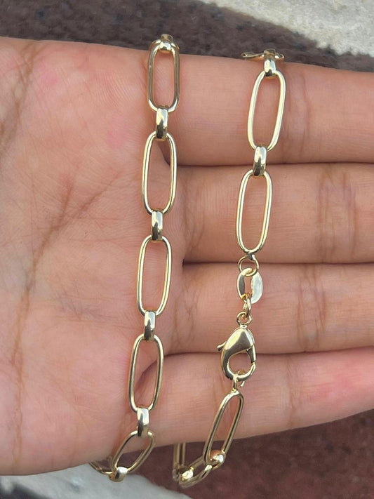 Paper Clip Chunky Bracelet 7.5" For Women and Girls 14K Gold Filled