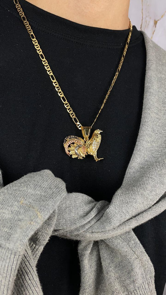 Rooster Chicken Pendant Charm Necklace Gallo Medalla Figaro Mariner 24" For Mens