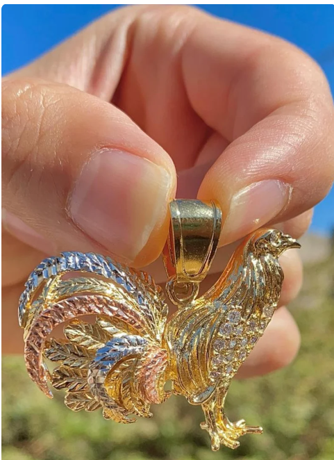 Chicken Rooster Pendant CZ 33x45mm Mens Womens