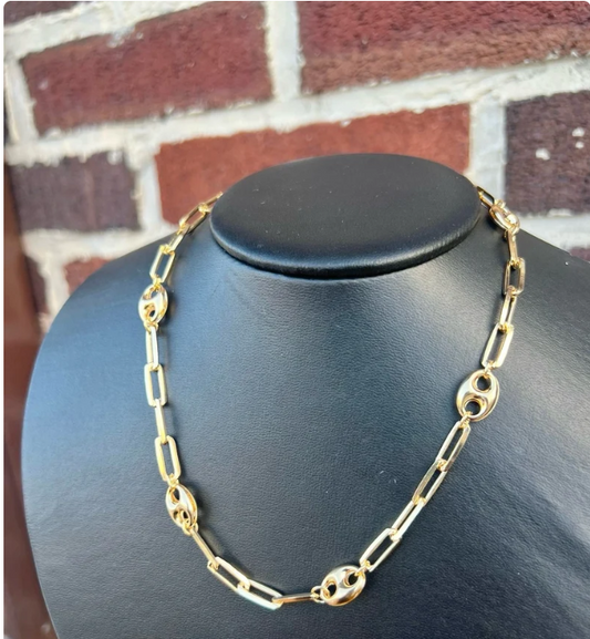 14K Yellow Gold Filled Paper Clip Chain Anchor Necklace 15.5" Ladies Girls Womens