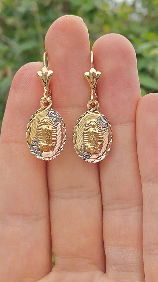 Aretes En Oro Virgen de Guadalupe 14K Dangle Earrings Lever Back For Womens Fashion