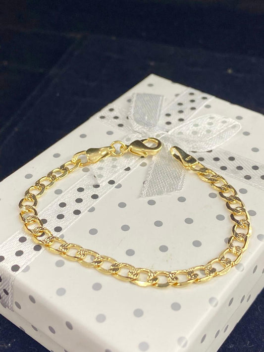 Baby Kids Curb Bracelet 5.5" Diamond Cut Design 14K Gold Filled Gifts for Childrens