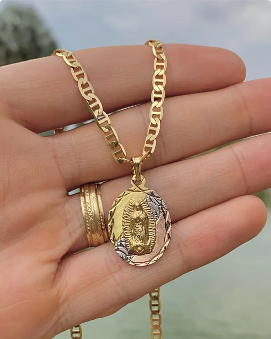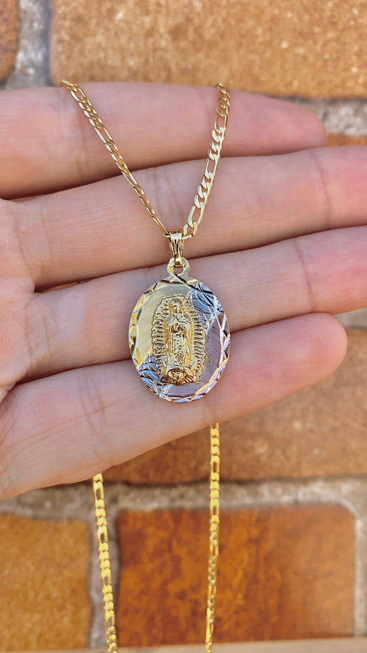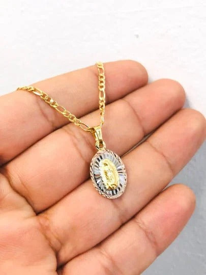 Tri Color Virgen de Guadalupe Necklace 20" 14K Gold Filled Womens Girls Ladies