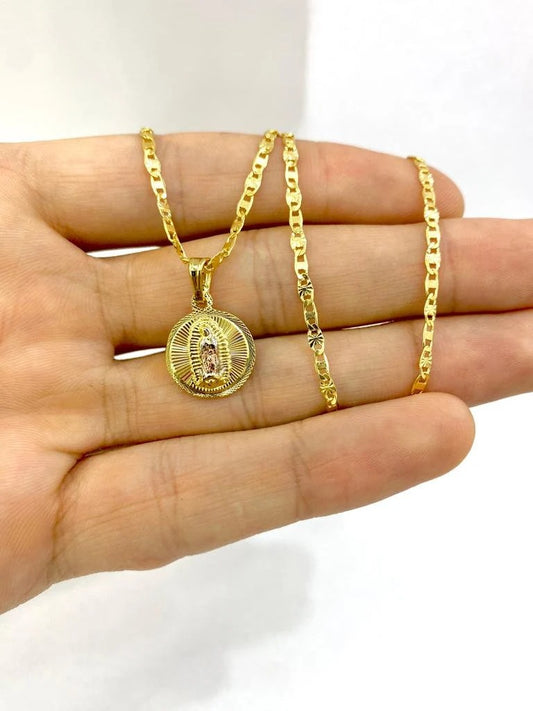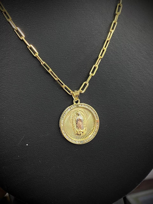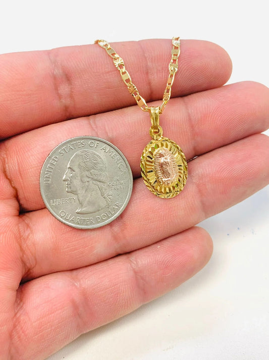 Virgen de Guadalupe Necklace 20" Valentino Chain 14K Gold Filled for Womens
