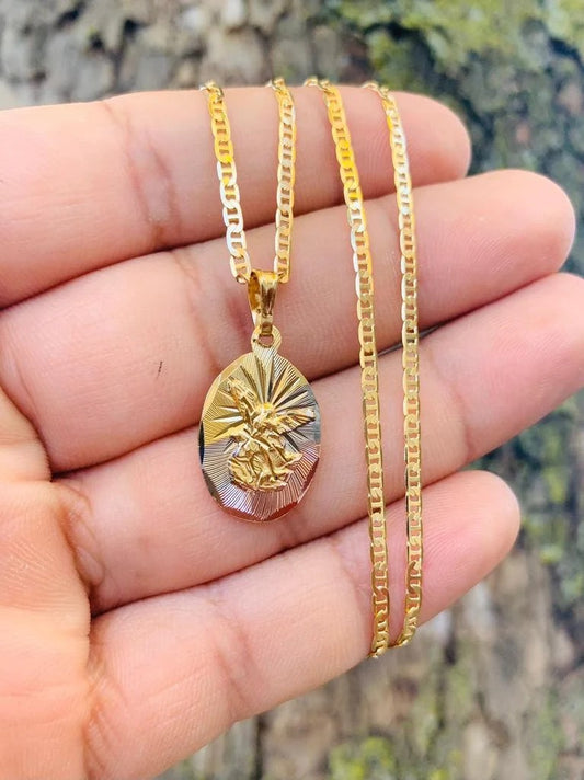Saint Michael Necklace 20" Pendant Womens and Mens Gold Filled 14K